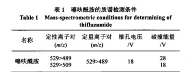 噻呋酰胺又叫噻氟菌胺(thifluzamide),屬于噻唑酰胺類殺菌劑,具有強(qiáng)內(nèi)吸傳導(dǎo)性和長(zhǎng)持效性?它是含噻唑環(huán)的苯基酰胺化合物,可防治多種作物病害,廣泛應(yīng)用于水稻?麥類?花生?棉花?甜菜?咖啡?馬鈴薯?草坪等多種作物m?目前尚不能査詢到噻呋酰胺在花生作物中的最大殘留限量(maximumresiduelimit,MRL)值,我國(guó)GB2763-2016規(guī)定噻呋酰胺在稻谷中的MRL值為7mg/kg,在糙米中的MRL值為3mg/kg,馬鈴薯為2mg/kg,日本肯定列表規(guī)定噻呋酰胺在糙米中的MRL值為1mg/kg,馬鈴薯為0.05mg/kg?膳食風(fēng)險(xiǎn)評(píng)估時(shí),花生及花生油均歸類為植物油進(jìn)行評(píng)估,日膳食量按0.0327kg計(jì)算?目前國(guó)內(nèi)外關(guān)于噻呋酰胺的檢測(cè)方法多種多樣,使用較多的是氣相色譜法和髙效液相色譜法其檢測(cè)方法容易受到雜質(zhì)干擾,選擇性差,近年來(lái),靈敏度高?選擇性強(qiáng)的高效液相色譜質(zhì)譜聯(lián)用技術(shù)被用于噻呋酰胺的殘留檢測(cè),但其檢測(cè)方式多是以負(fù)離子掃描模式為主,在實(shí)際的農(nóng)殘分析時(shí)存在一定的局限性,靈敏度通常不如正離子掃描模式髙?本研究經(jīng)過(guò)對(duì)前處理過(guò)程和儀器的調(diào)節(jié)優(yōu)化,建立了在電噴霧正離子模式下,采用超髙效液相色譜-串聯(lián)質(zhì)譜聯(lián)用儀(ultraperformanceliquidchromatography-tandemmassspectrometer,UPLC-MS/MS)多反應(yīng)監(jiān)測(cè)(multiplereactionmonitoring,MRM)模式,檢測(cè)噻咲酰胺在花生中的殘留的分析方法?樣品經(jīng)乙腈提取,QuEChERS方法凈化,采用基質(zhì)匹配外標(biāo)法定量測(cè)定,以期為膳食風(fēng)險(xiǎn)評(píng)估工作打下基礎(chǔ)?