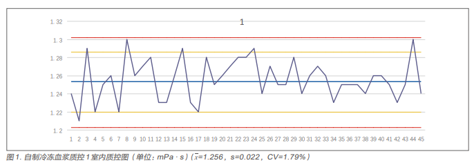 報廢濾白冷凍新鮮血漿質(zhì)控1(n=20):1.253±0.017 (CV=1.32%)。(單位:mPa · s)。 報廢濾白冷凍新鮮血漿質(zhì)控2(n=20):1.284±0.020 (CV=1.58%)。(單位:mPa · s)。