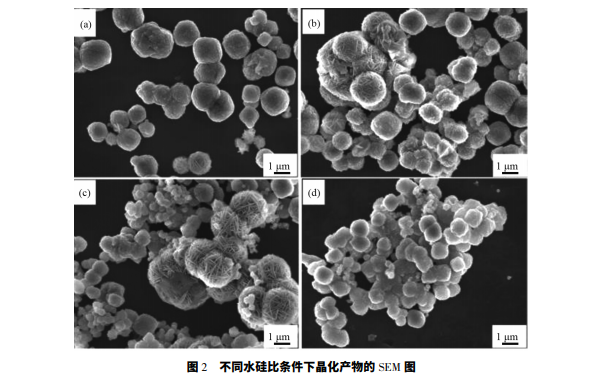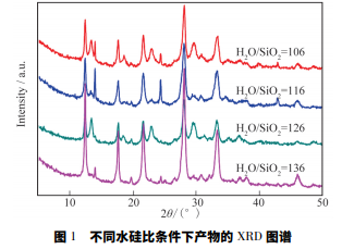 按照物質(zhì)的量之比 SiO2 ∶ Al2O3 ∶ Na2O ∶ H2O= 1 ∶ 0.51 ∶ 1.66 ∶ ( 106 ~ 136) ,將 NaOH 和去離子水混 合,分別加至粉煤灰提取的 H2SiO3 和 Al( OH) 3 沉淀 中,攪 拌 至 溶 解,得 到 Na2SiO3 和 NaAlO2 溶 液,將 NaAlO2逐滴加入 Na2SiO3 中,攪拌 30 min 后移至反應(yīng) 釜中在 120 ℃下晶化 8 h 得到產(chǎn)品。