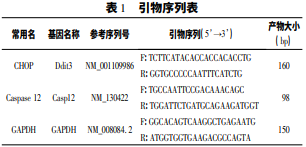 Lactacystin、阿撲嗎啡,購自美國 Sigma 公司; TriZol( 批號 14105) ,購自 Invirogen 公司; 逆轉(zhuǎn)錄試劑 盒( 批號 0051509) ,購自 New England Biolabs; 擴(kuò)增試劑盒 ( 批號 0006231745) ,購自 Agilent; 蛋白質(zhì)裂解液、一抗稀釋 液、ECL 化學(xué)發(fā)光試劑,購自碧云天生物技術(shù)研究所; 蛋白 測定試劑盒,購自鼎國生物技術(shù)有限公司; 兔抗人 β - Actin 多克隆抗體,購自 Santa Cruz; 羊抗兔 HRP - IgG,購自 Santa Cruz; anti - CHOP、anti - Caspase12,購自 cell signal 公司。